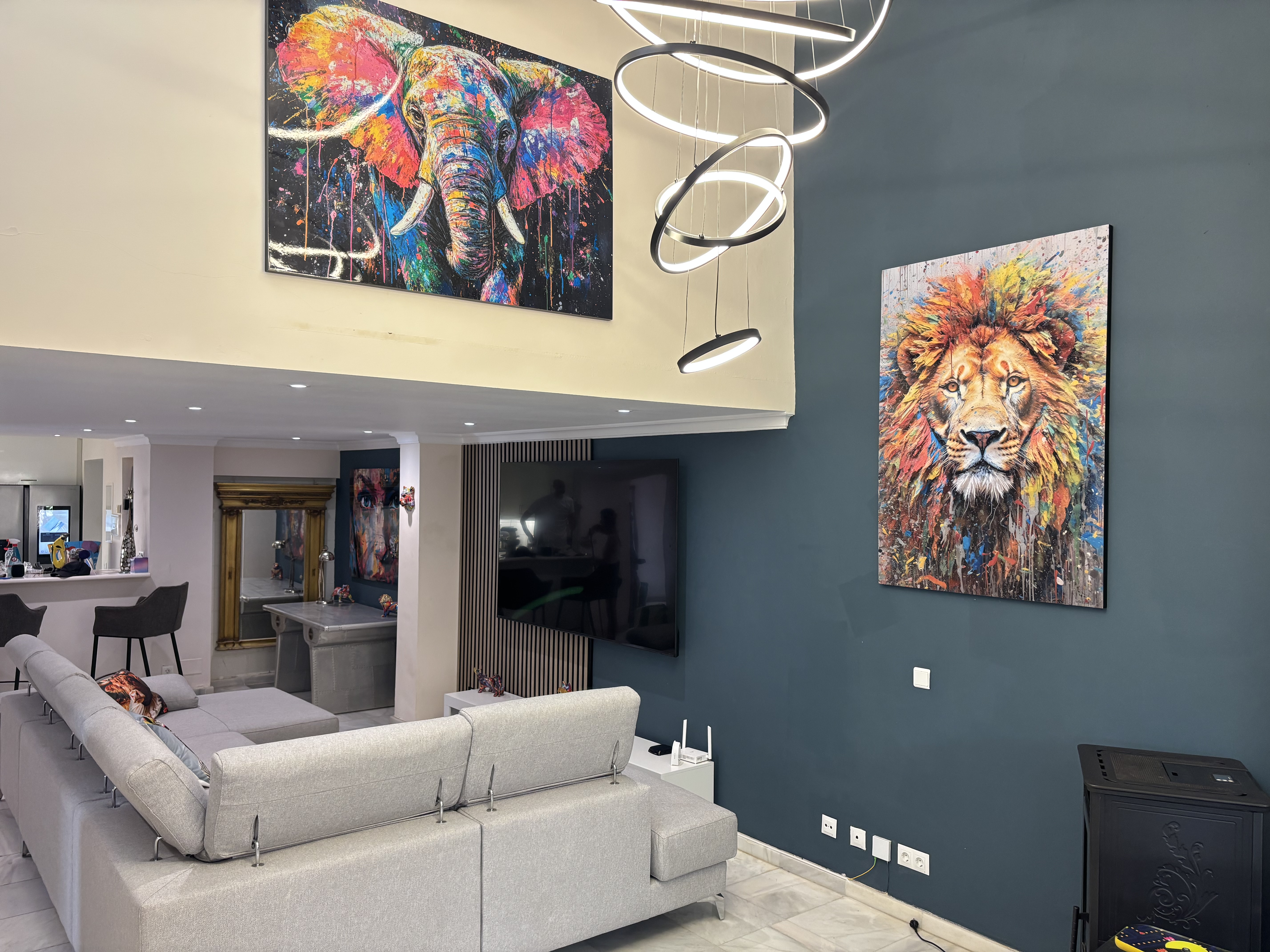 Casa Milla De Oro is a villa located on Marbella’s Golden Mile within a short walk along the promenade to Puerto Banús. The villa comprises of 4 bedrooms and 2 bathrooms. The outside area has a private pool, outside dinning area, games area and mature beautiful gardens. Each room is fully air conditioned and the villa has underfloor heating throughout and a wood burning heater. The villa comes complete with fully equipped kitchen, laundry room, fibre optic WiFi, BBQ, pool table, games machine and a 90 inch tv screen.